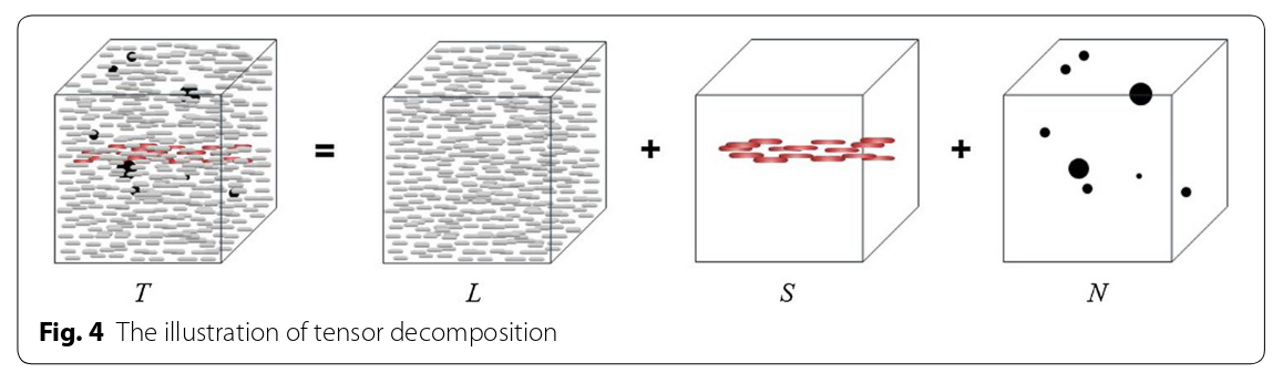 \[D = H_1L + H_2S + N,\]where \(H_1\) and \(H_2\) are measurement matrices. Then, to recover L and S the authors propose the following minimization problem that promotes low-rank solutions for L and sparse solutions for S:
