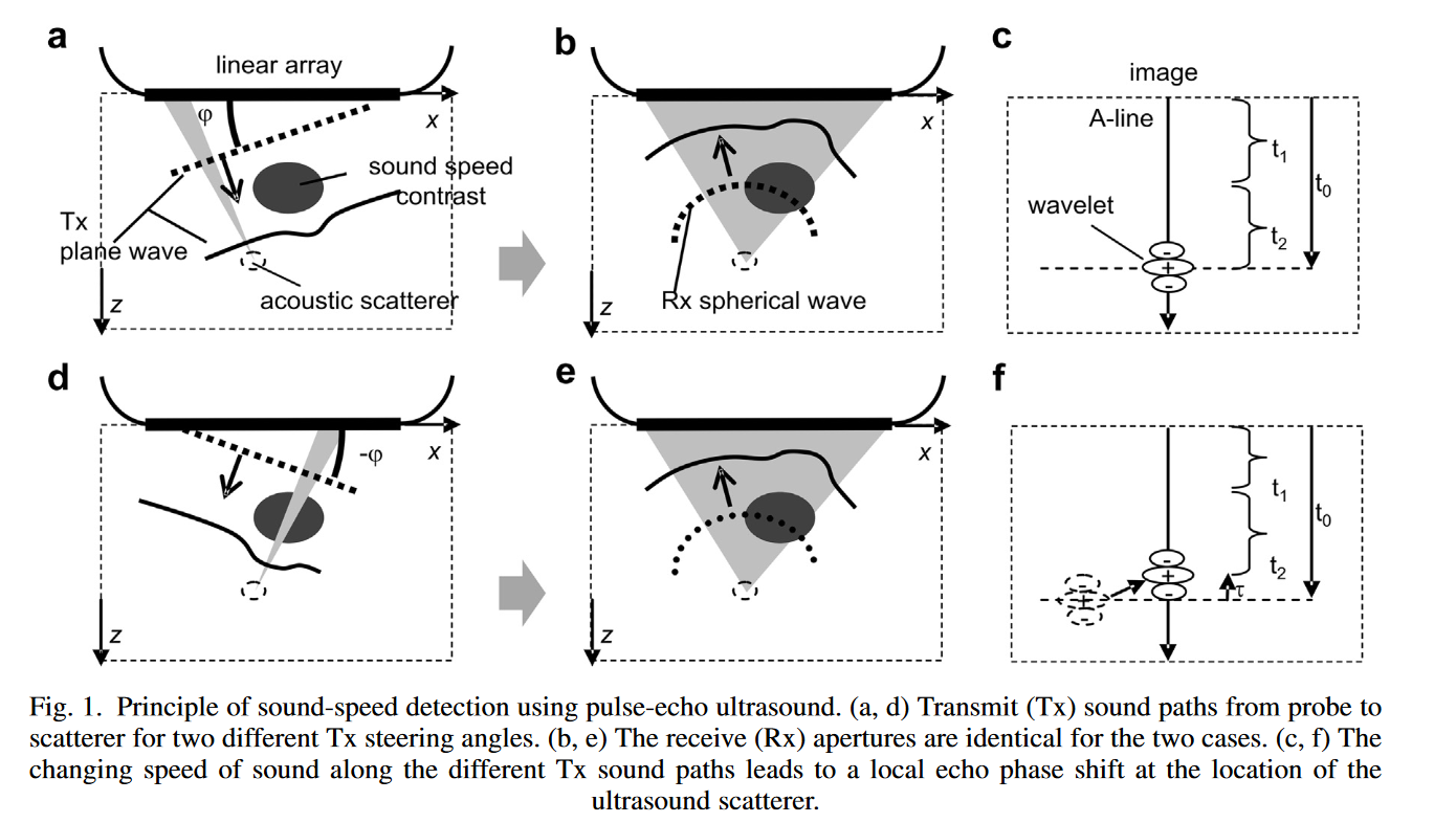 - Considering two ray paths with different steering angles, the sound speed deviations accumulated along the propagation paths can manifest in a shift in the time of flight :